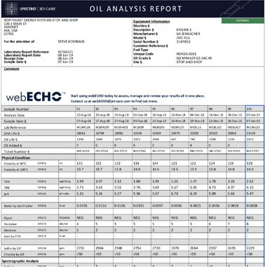 - Viscosity, TBN, TAN, IpH, Oxidation, Wear Metals, etc.